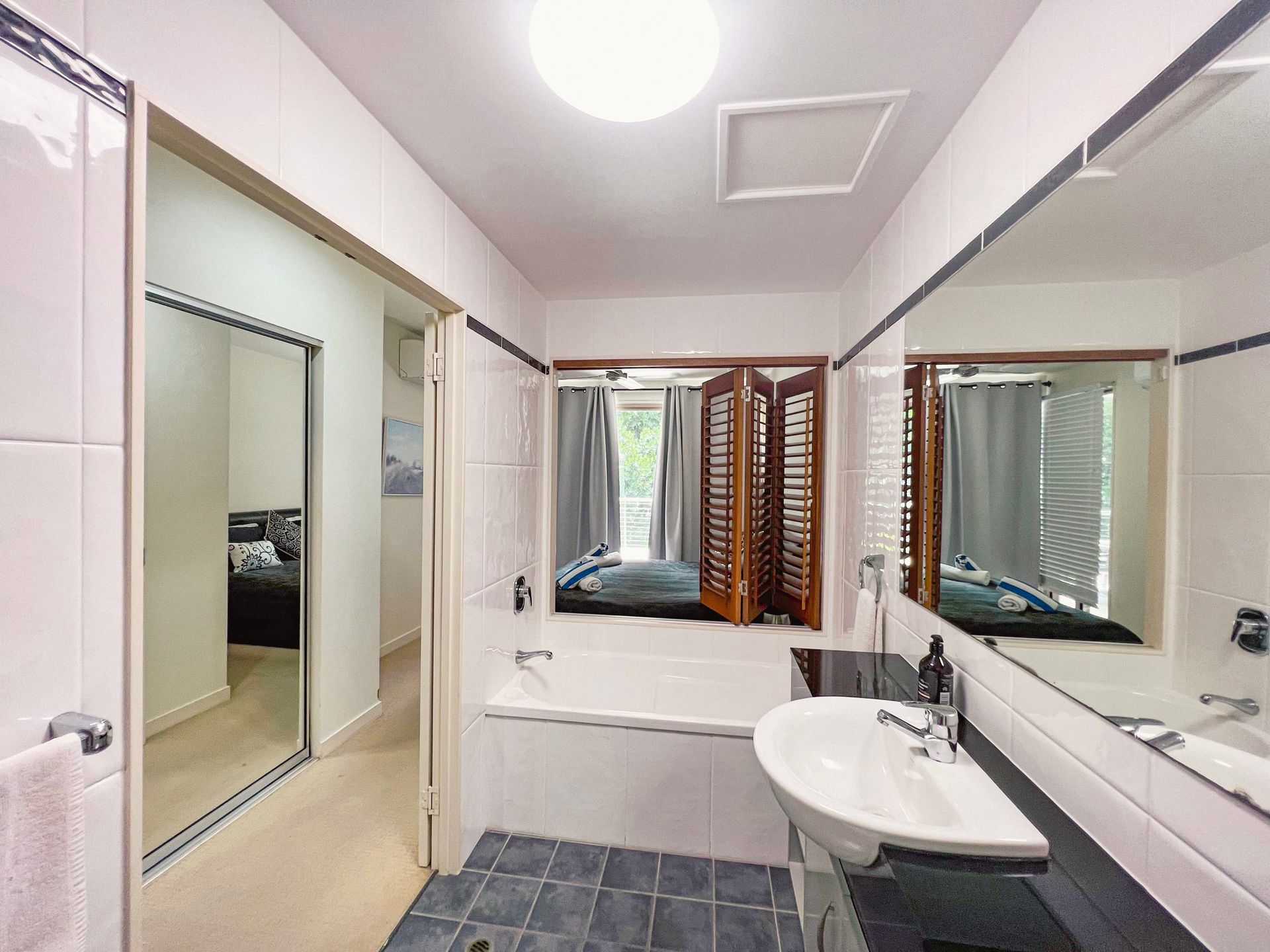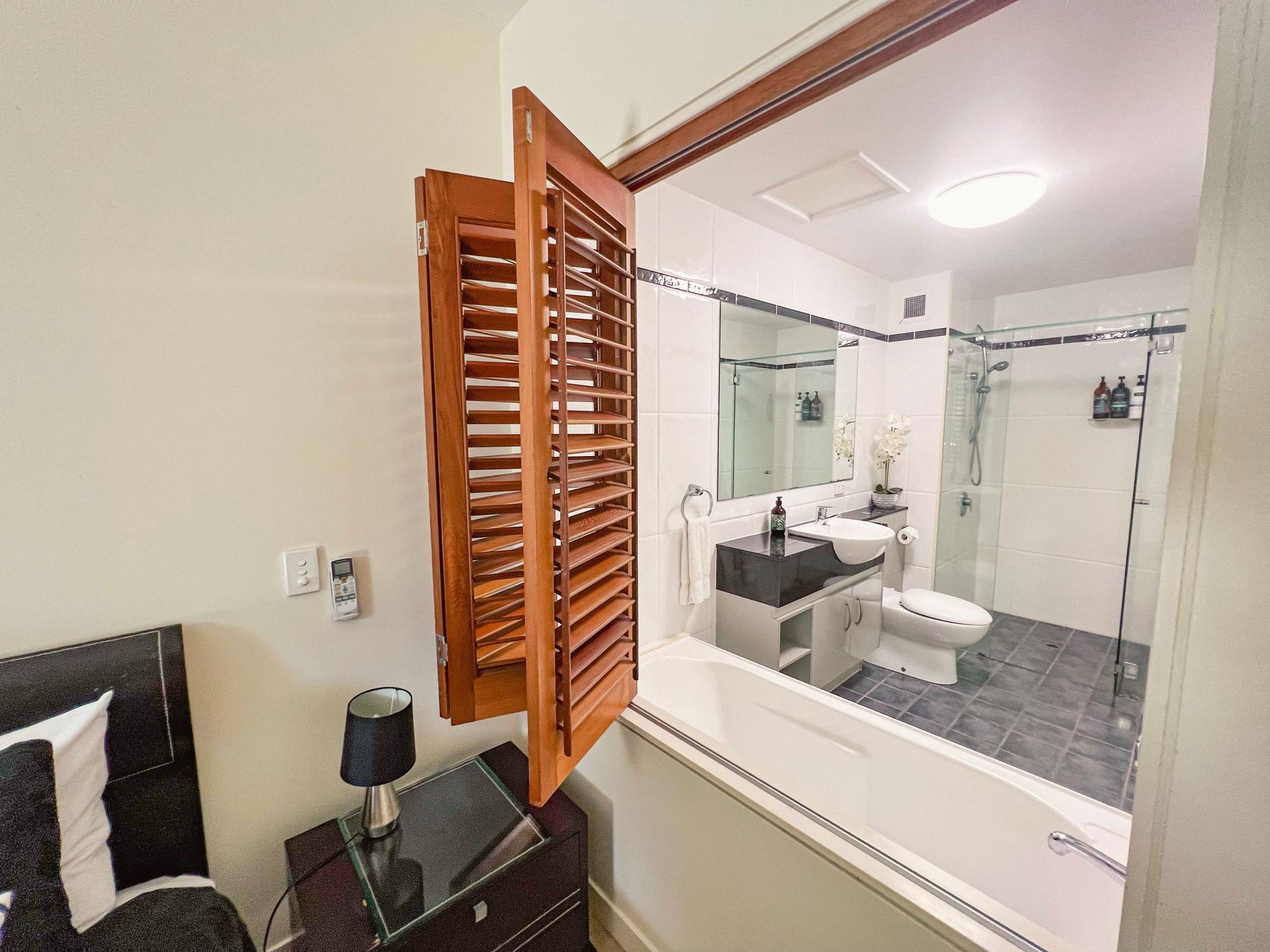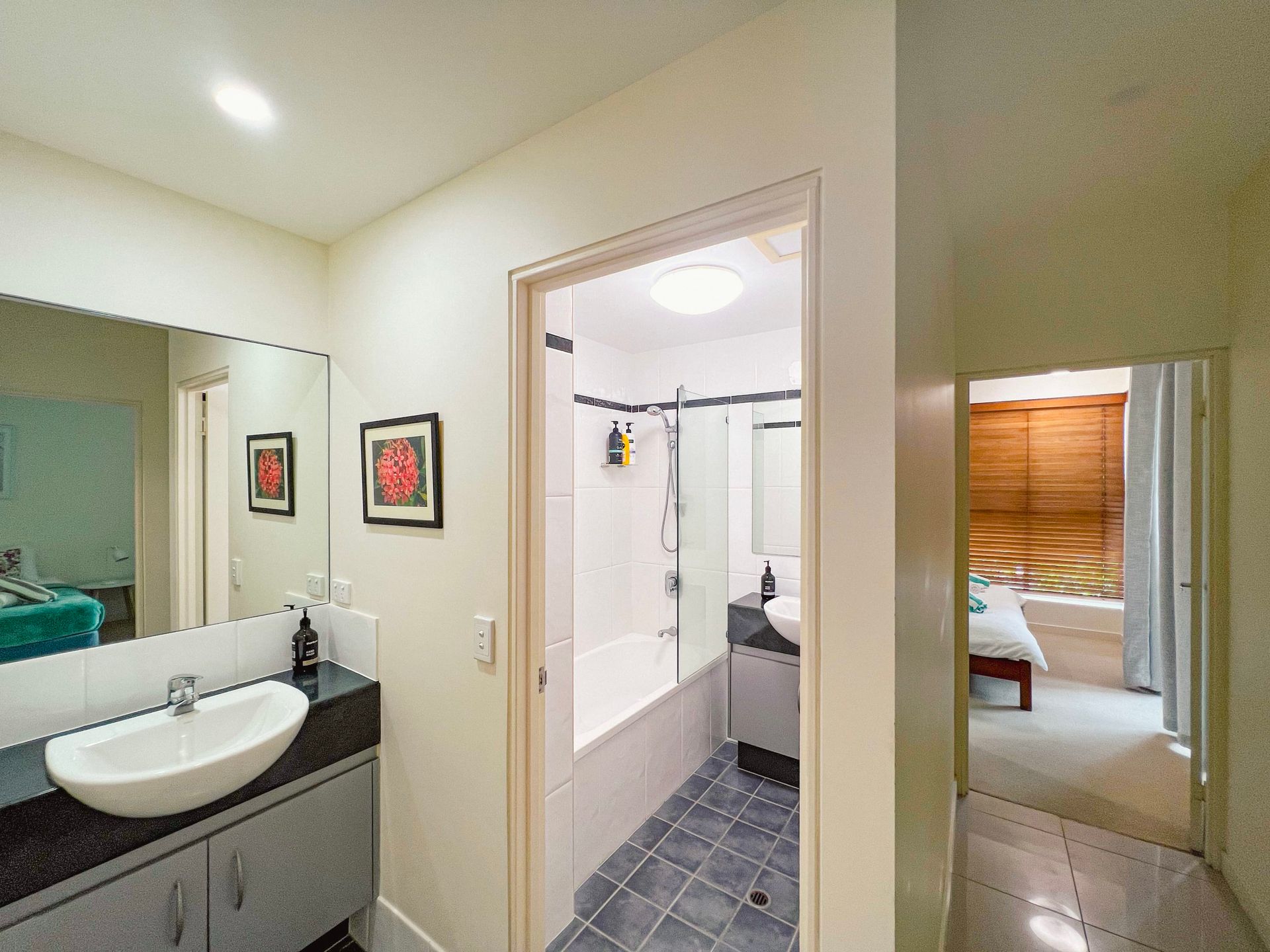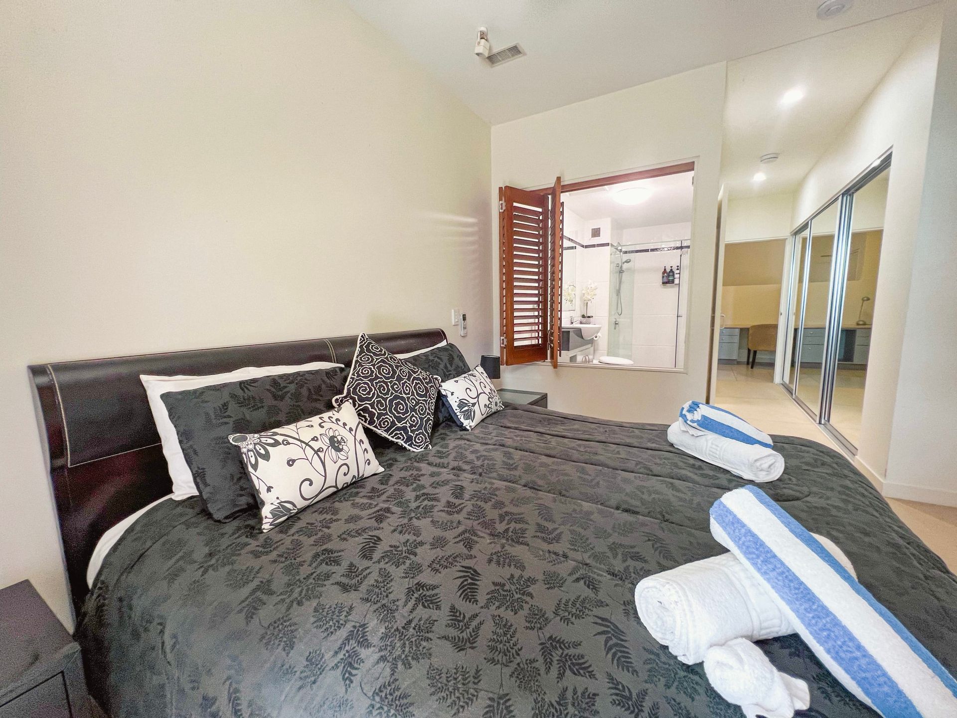 The apartment is tastefully furnished with the main bedroom and lounge room, air-conditioned with a spacious kitchen, 3 bedrooms all with built-in cupboards and a clever office nook with cupboards. The main bedroom has ocean views and an en-suite with bathtub. The other two bedrooms have pool views and share the main bathroom. And, there's a separate laundry.