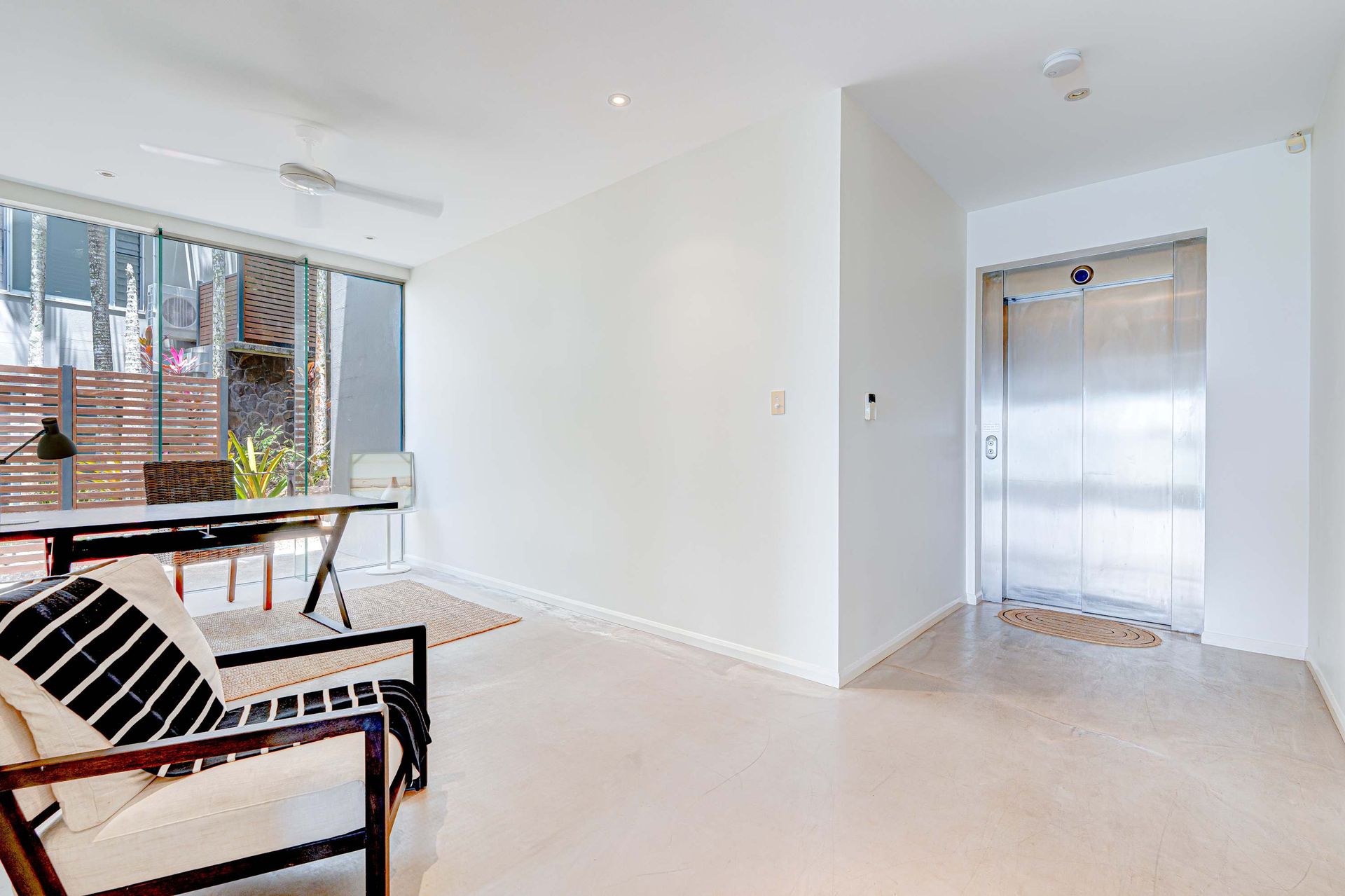 Private lift access opens to a spacious foyer and light-filled study nook
