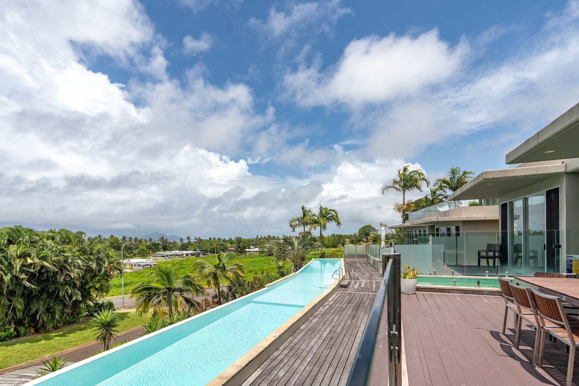 Cool off as summer storms roll in or enjoy a morning swim in the 30-metre lap pool, flowing through lush tropical gardens — directly accessible from your deck
